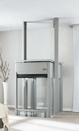 The Stiltz Home Lift has one of the smallest footprints of any lift domestic lift and covers less than a square metre.
